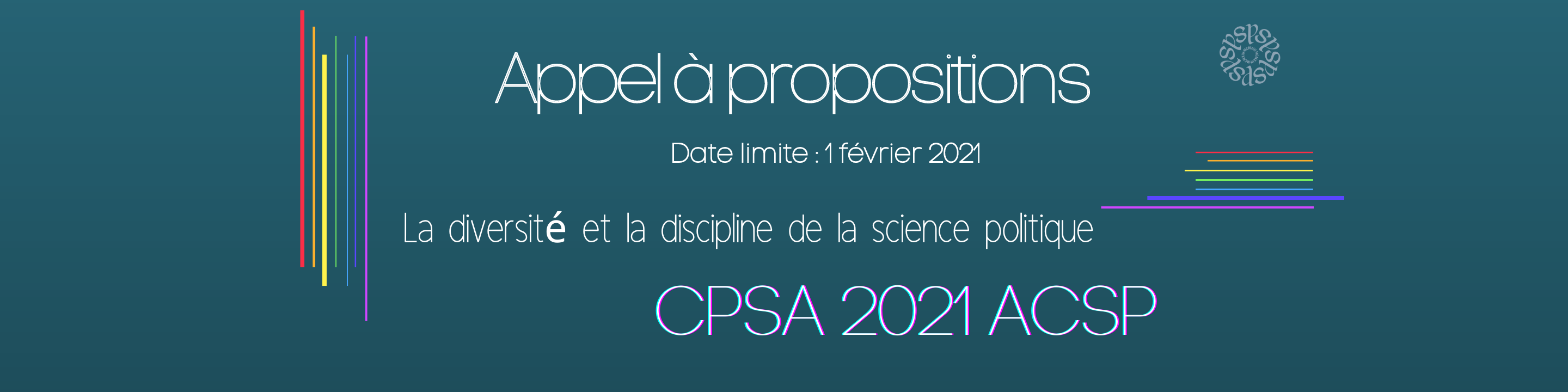 Le comité du programme vous invite à soumettre des propositions pour l’édition 2021 du congrès annuel de l’Association canadienne de science politique. Pour la première fois dans notre longue histoire, le congrès de l’ACSP se déroulera entièrement en mode virtuel. En nous engageant à organiser un congrès virtuel dès le départ, plutôt que changer de formule ultérieurement, nous sommes en mesure de mettre au point et sur pied le congrès le plus souple et le plus accessible qui soit.